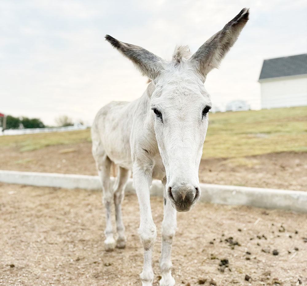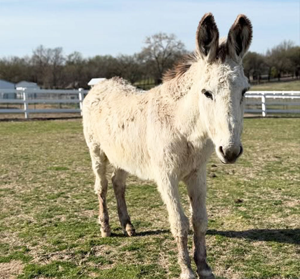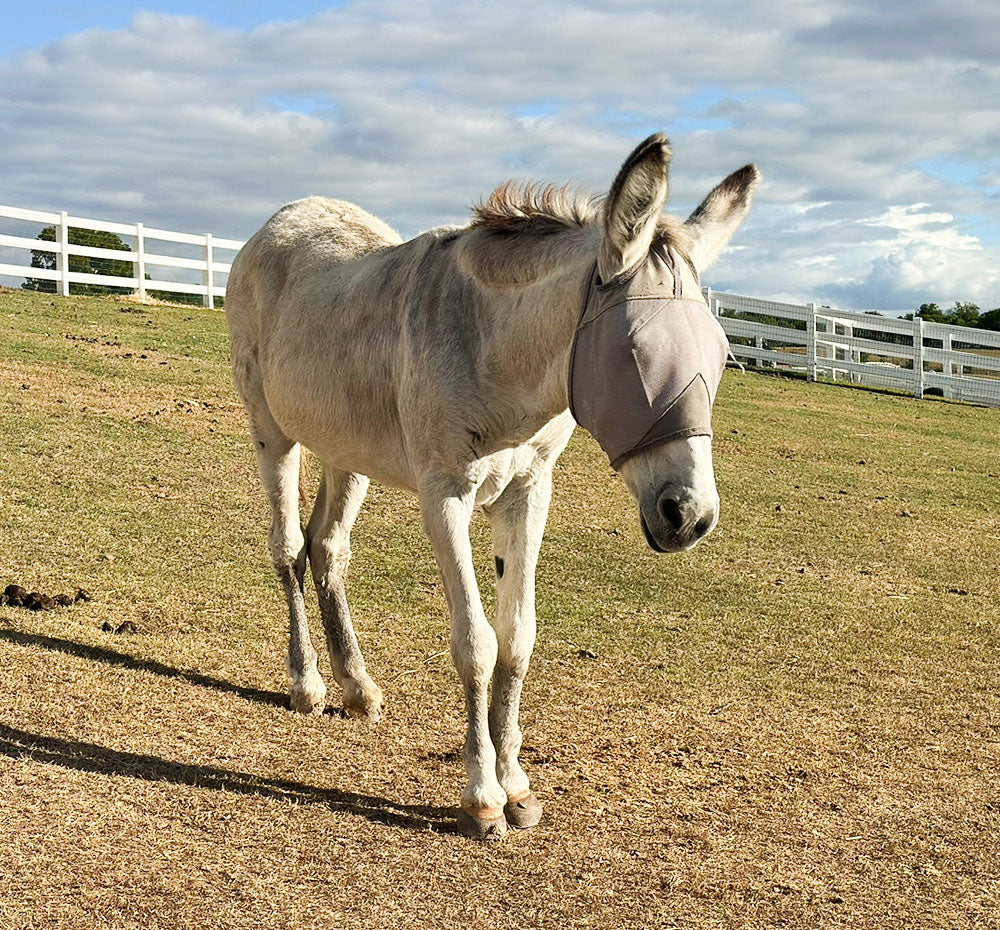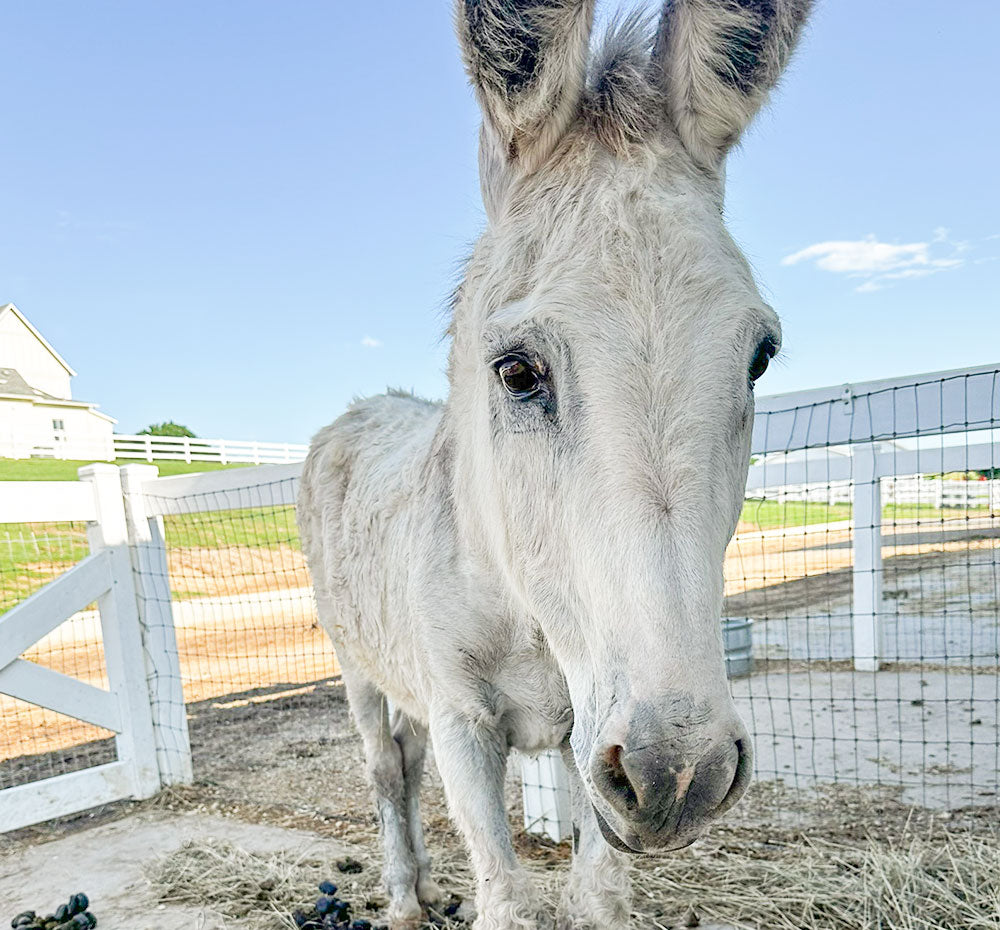 This gentle giant of a donkey came to us as a foster with some tough hoof issues. But thanks to a lot of special care, he’s standing tall and loving life. While his best friend, Poppi, has sadly passed away, Compadre is still thriving, enjoying his peaceful days full of sunshine and cuddles. He’s a laid-back, affectionate soul who we’ve officially adopted as part of our Sanctuary family, and we’re so happy to help him heal and grow stronger every day.