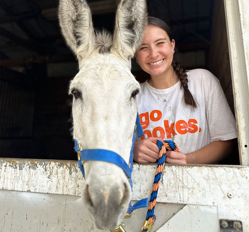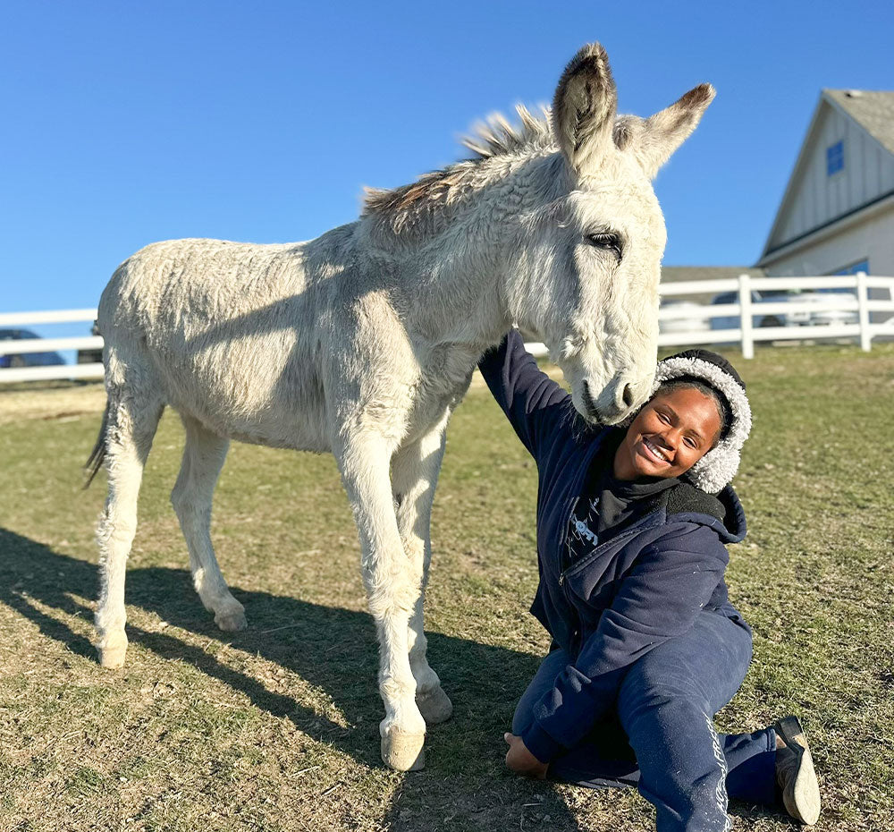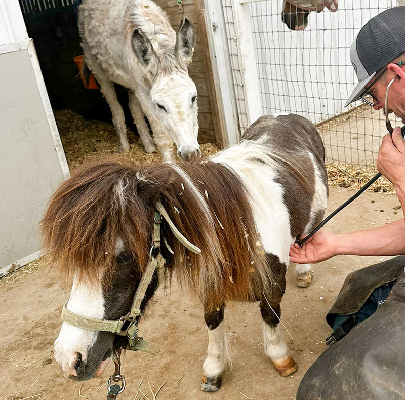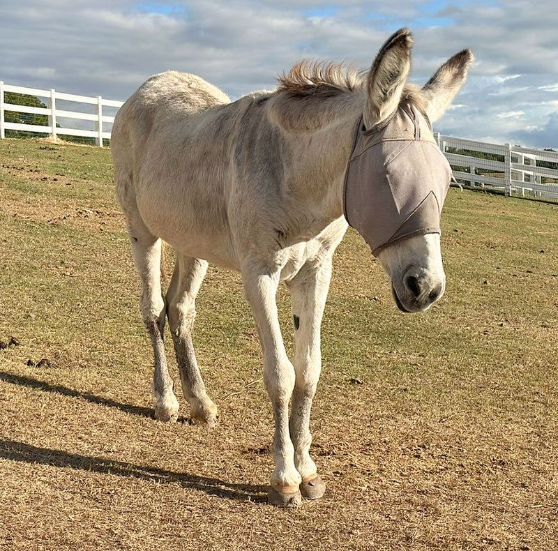 This gentle giant of a donkey came to us as a foster with some tough hoof issues. But thanks to a lot of special care, he’s standing tall and loving life. While his best friend, Poppi, has sadly passed away, Compadre is still thriving, enjoying his peaceful days full of sunshine and cuddles. He’s a laid-back, affectionate soul who we’ve officially adopted as part of our Sanctuary family, and we’re so happy to help him heal and grow stronger every day.