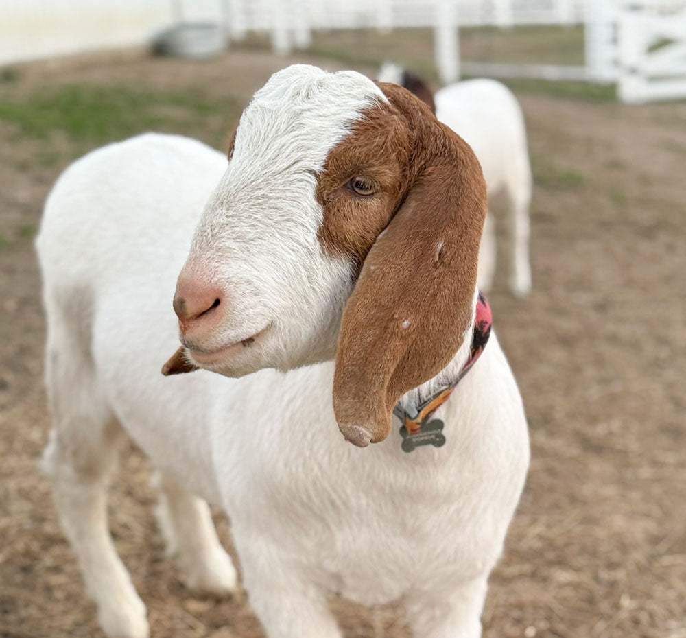 Riggs is one of our five newest goat rescues! These sweet boys were part of a school program, but when the program ended, they faced an uncertain future—sold for slaughter or to a private buyer. Thanks to the compassion of the students and a kind-hearted buyer, they found their way to us for a second chance at life. Full of energy and joy, they’ve already made themselves at home, spending their days playing, exploring, and collapsing into adorable sleepy piles.