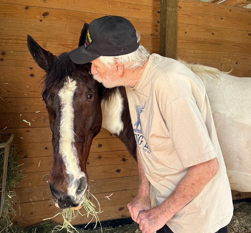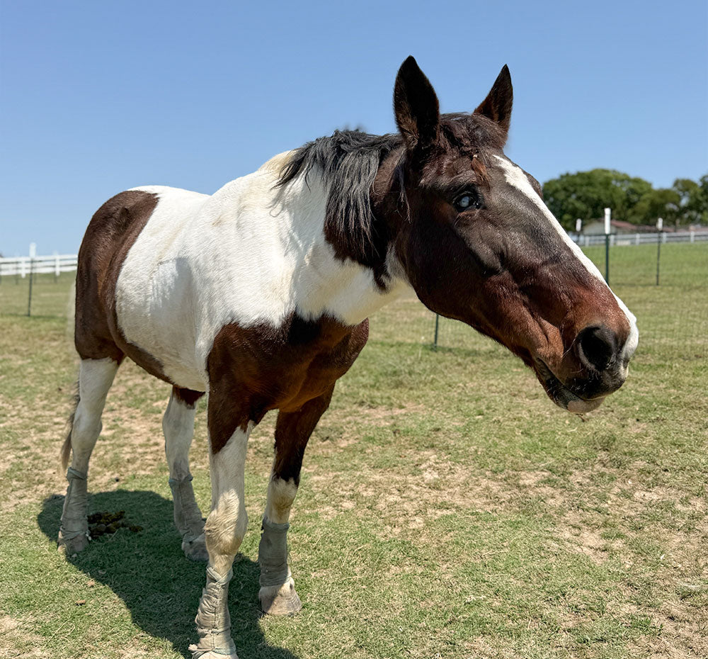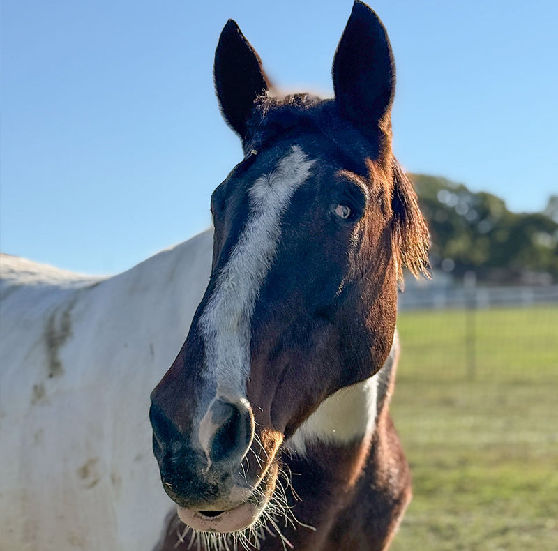 A loyal FHF customer reached out to us about an elderly friend who had a fully blind horse that he couldn’t care for anymore due to personal health issues. We went to visit Danny and his owner and our hearts were instantly melted. We knew we had to help. Danny is an 11 year old Tennessee Walking horse who is fully blind. He is incredibly smart and learned to navigate his old pasture flawlessly.
