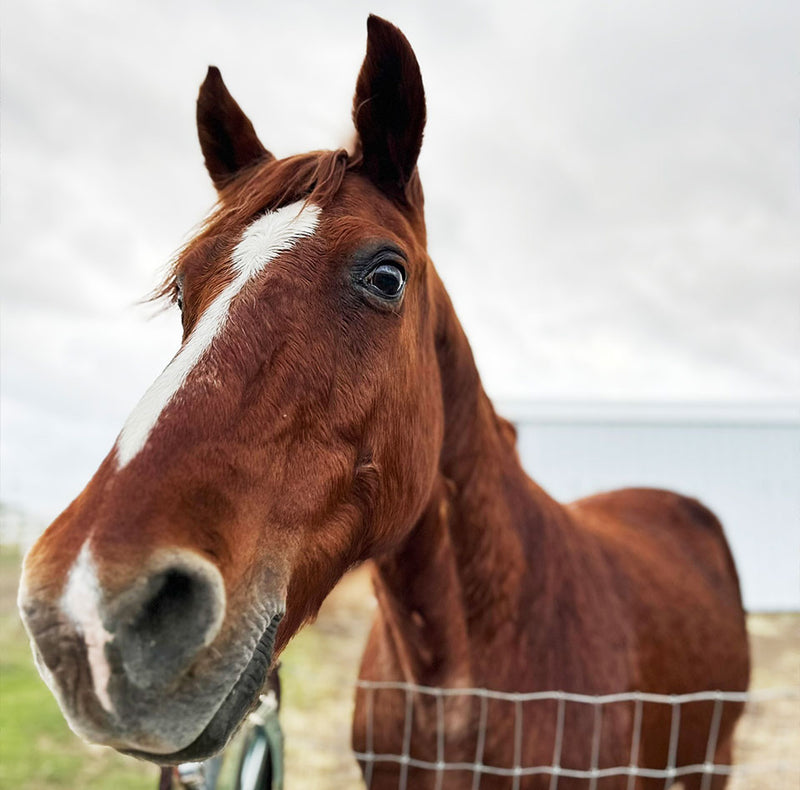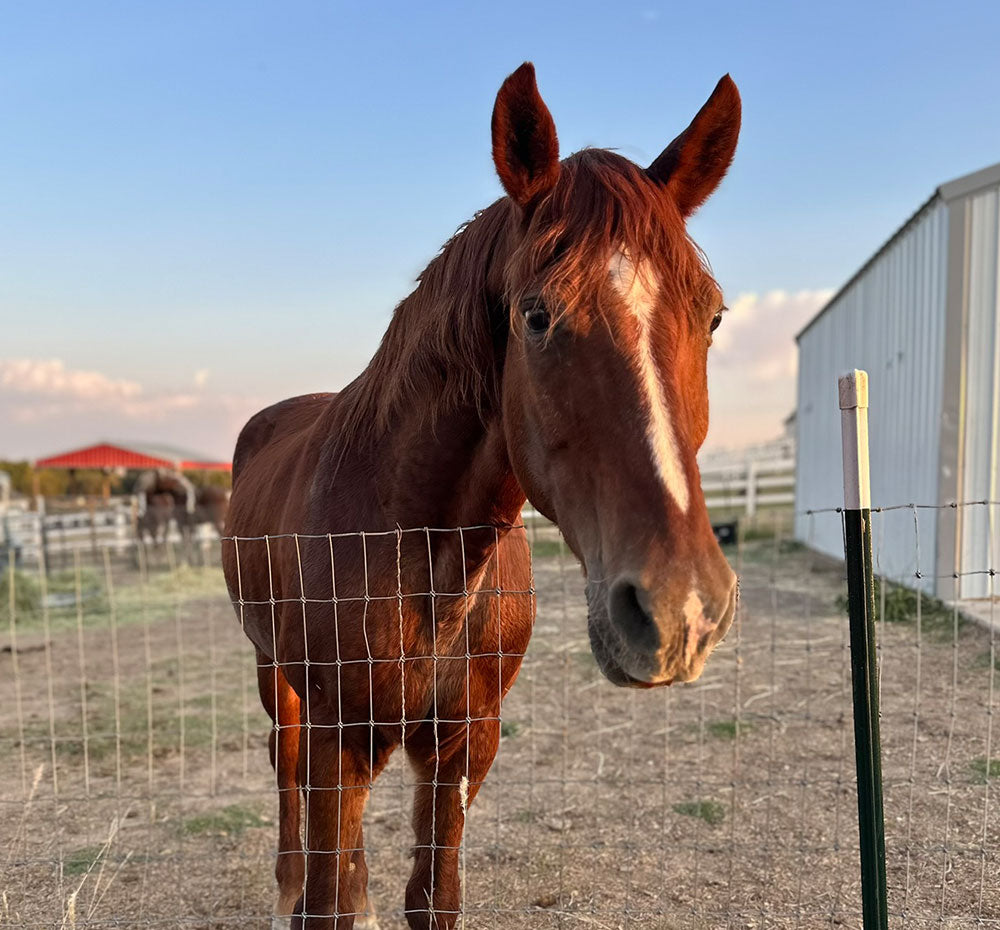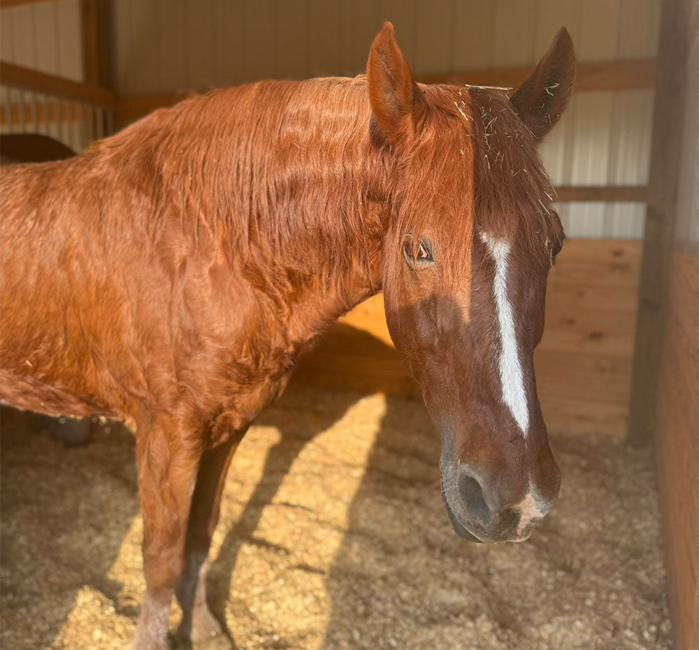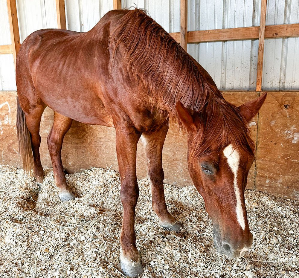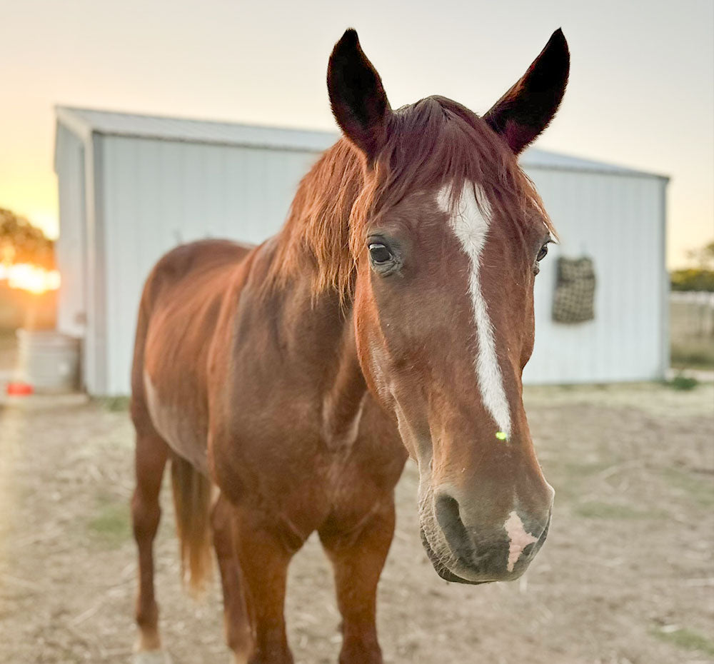 Sammy joined us through our Foster to Heal Program in partnership with Singing Whales Rescue in Hawaii. He arrived with fluid in his chest and serious hoof rotation in all four feet. Dr. Metcalf and our team have worked tirelessly to help him heal. Along the way, he fell for Maggie, and we fell for him! Transport back to Hawaii became tricky. So… we made it official and adopted Sammy!
