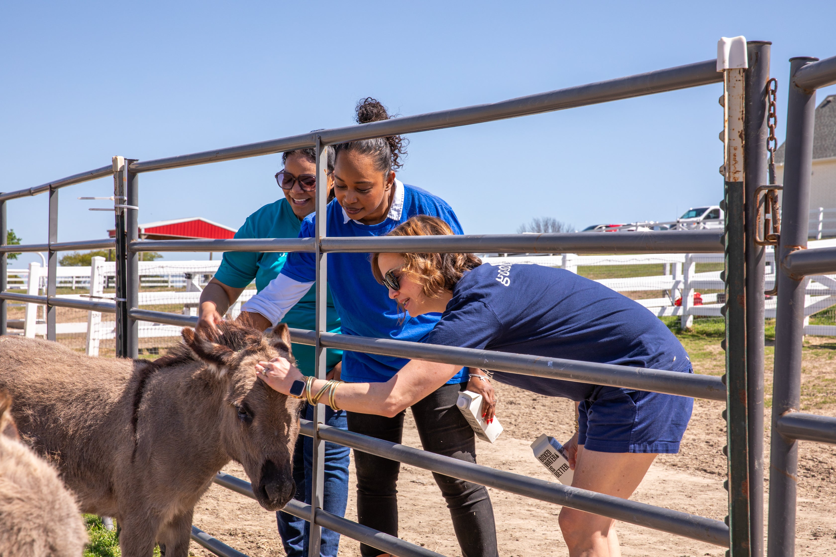 Surrounding our skincare headquarters is our nonprofit Farm Animal Sanctuary. If you have 2 hours to spare between 8am - 1pm, any day of the week, you can help us with "Scrub Squad' activities where we provide room service for each animal's living quarters. On weekends, we add other projects such soaping and washing stall doors, cleaning brushes, windows, and walkways, and, of course, hugging goats!