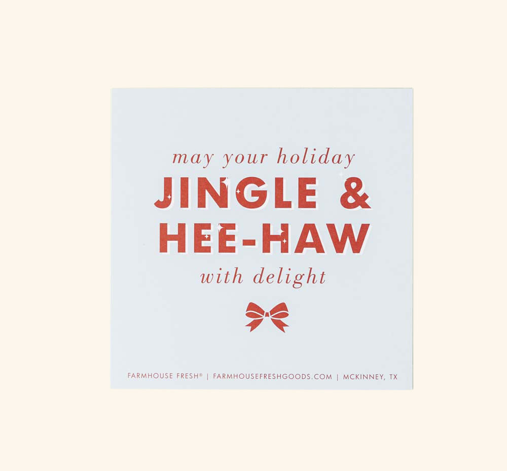 Make your gift recipient jingle and hee-haw with delight this season! A holiday greeting card from the Farm will add a holly jolly flair to your gift.