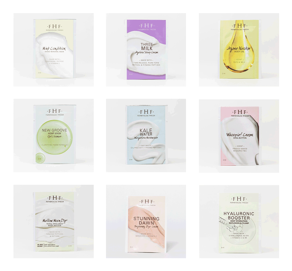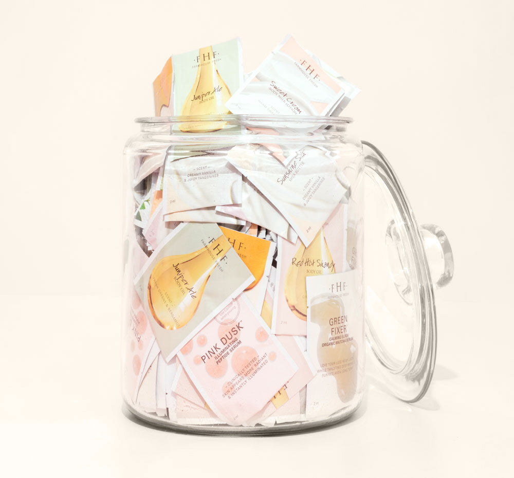 Experience the WIDEST assortment of our luxurious products in convenient, single-use packets! Each FHF favor bag contains a whopping 20 unique sample packets of our most beloved, award-winning face & body care products. Share the glow with friends and family, or use them as delightful favors for special occasions like bridal showers, graduations, birthdays and more. Perfect for on-the-go, these packets are travel-friendly, ensuring you can take your skin-nourishing favorites with you wherever you roam.