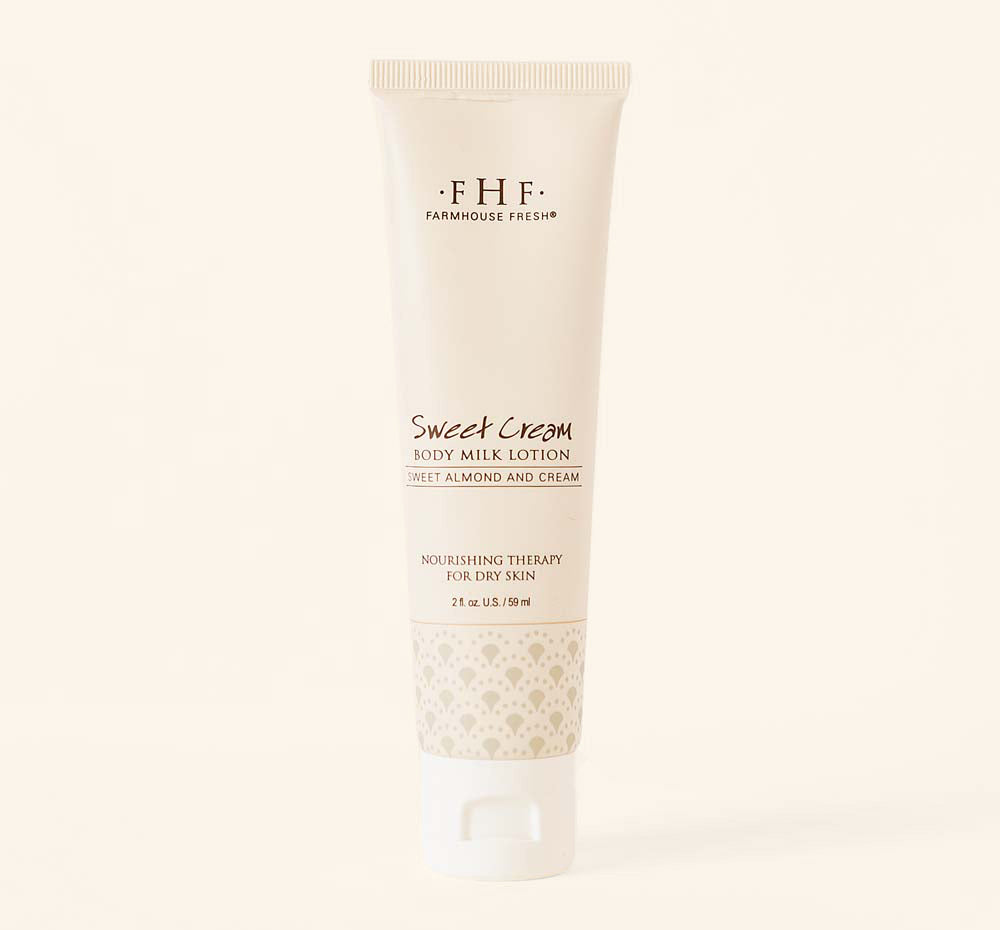 Sweet Cream Body Milk Travel Lotion has been a customer-favorite for its light, yogurt-like scent that both men and women adore!